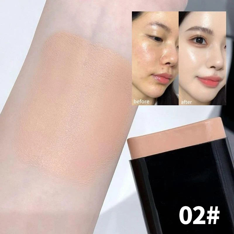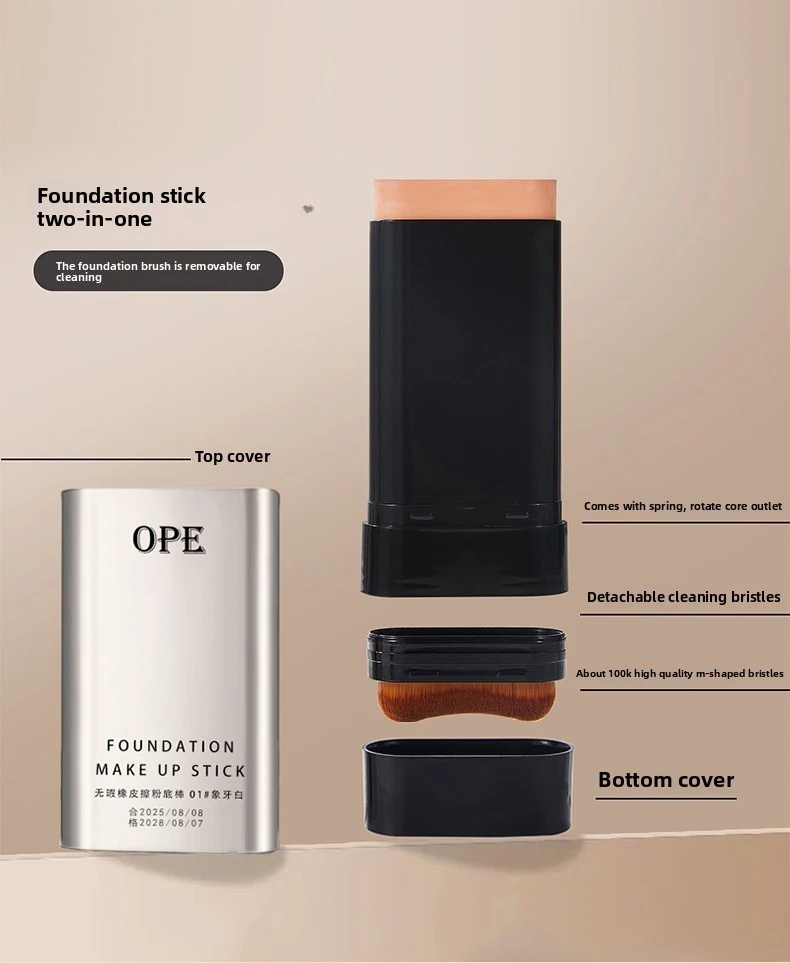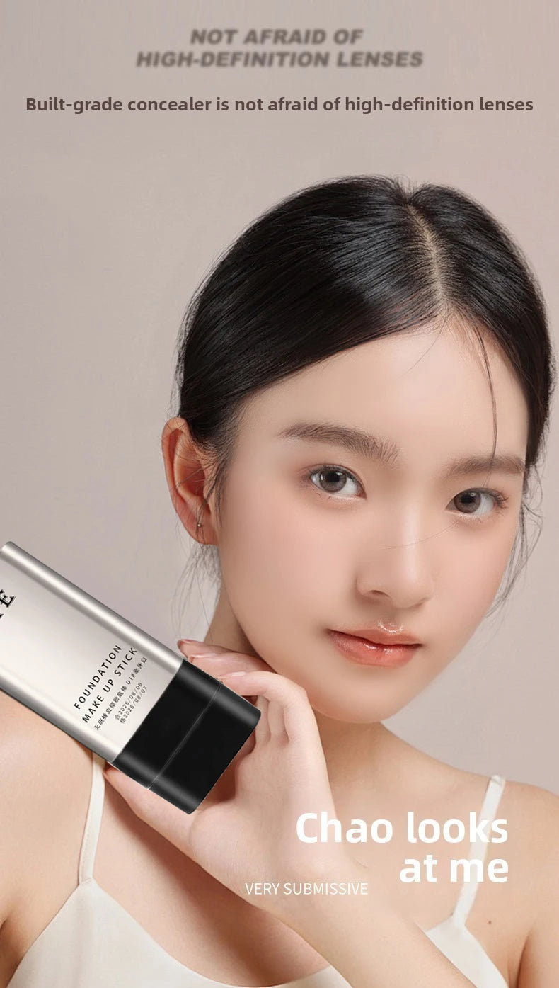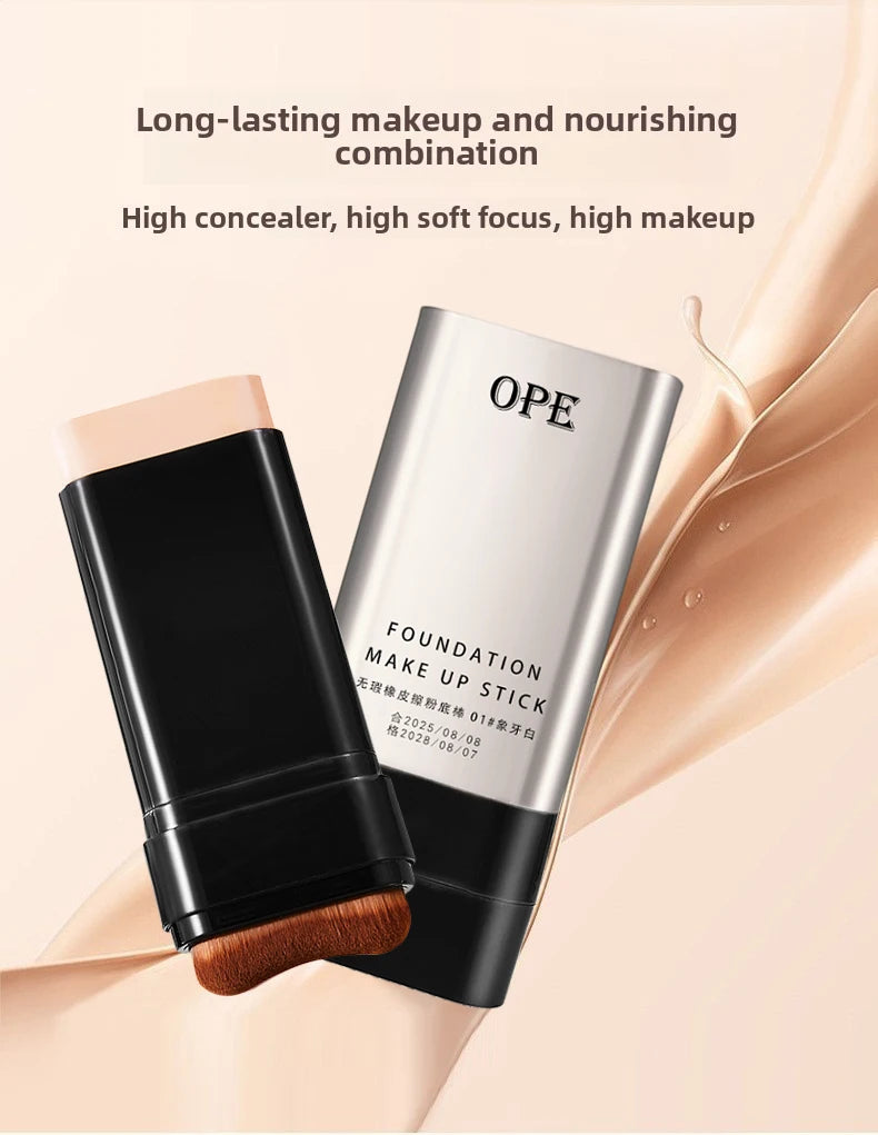 Full coverage light foundation make-up stick (with brush head), lasting moisturizing, waterproof, natural makeup, cream texture