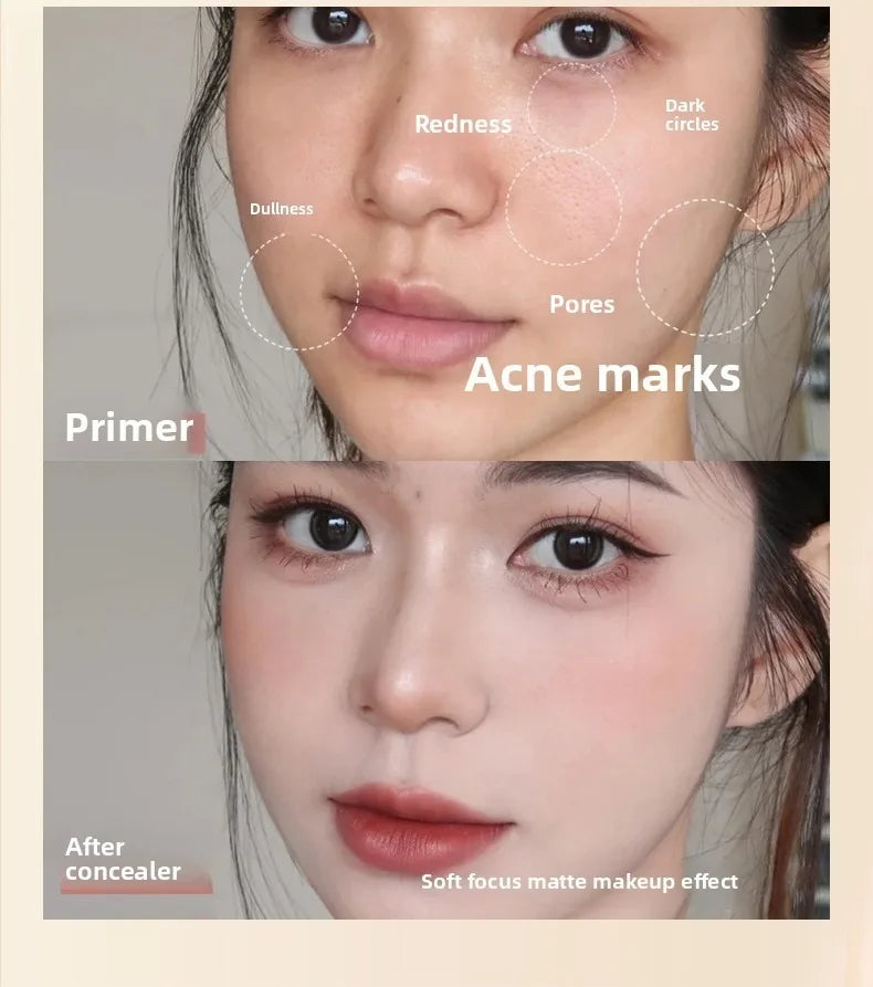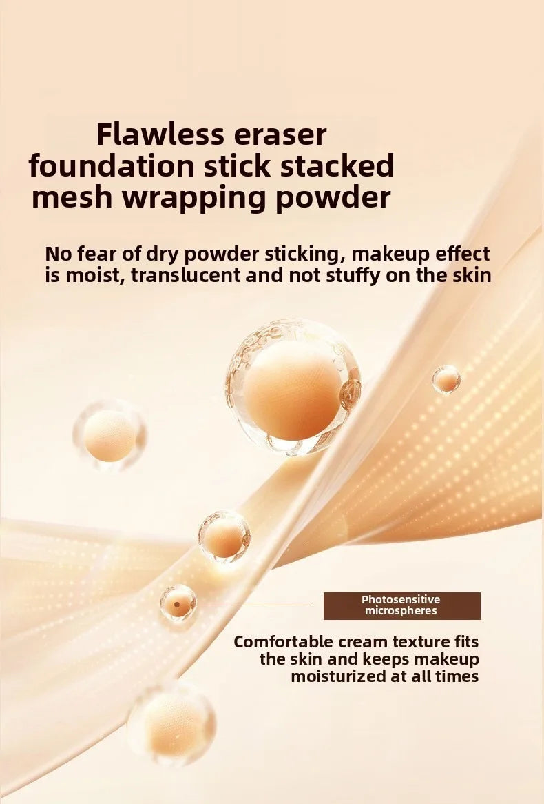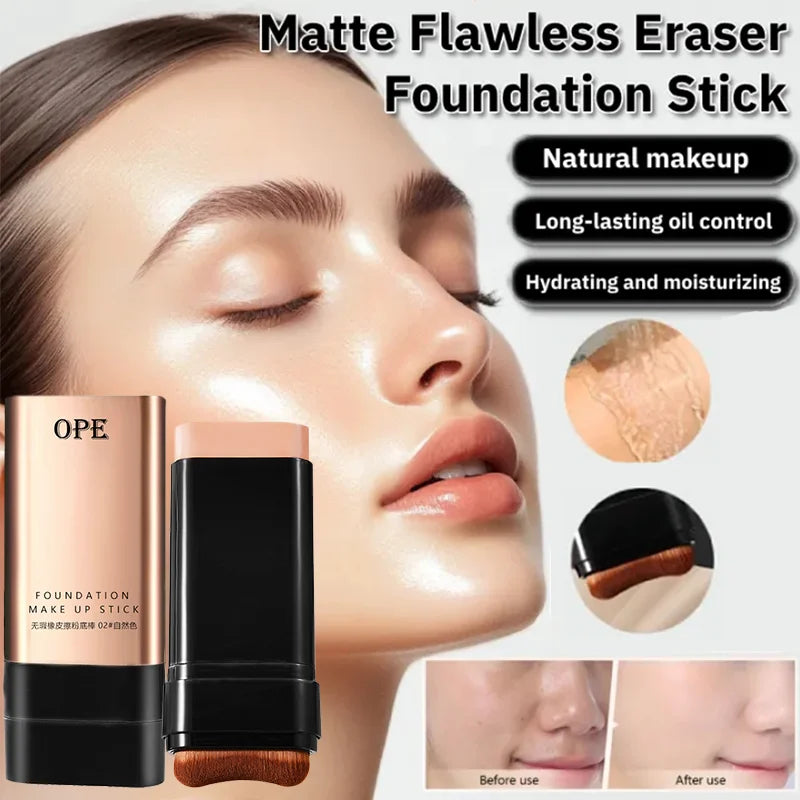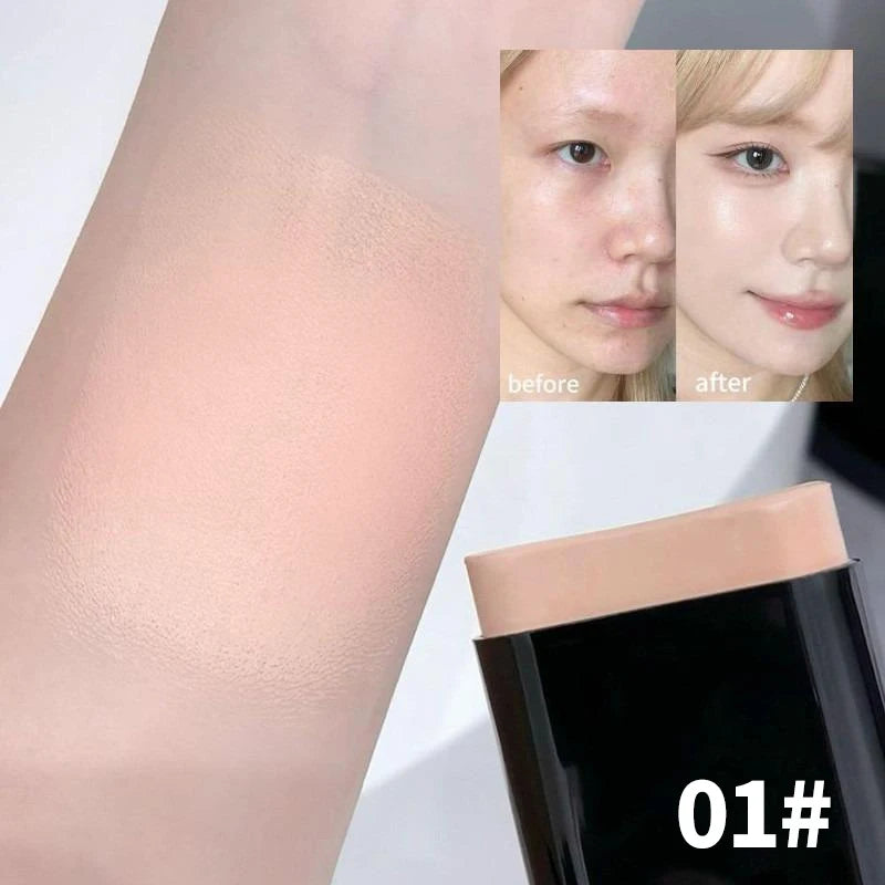 Full coverage light foundation make-up stick (with brush head), lasting moisturizing, waterproof, natural makeup, cream texture